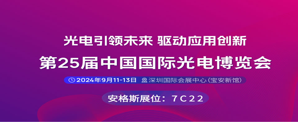 第25屆中國(guó)國(guó)際光電博覽會(huì) 日期:2024.9.11-13 地點(diǎn):深圳國(guó)際會(huì)展中心 安格斯展位號(hào):7C22 期待您的到來(lái)!
